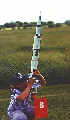 Out of production for a number of years, I just had to fly this Estes Saturn 1-B on a cluster of four C motors. This is one kit I would like to see again! |